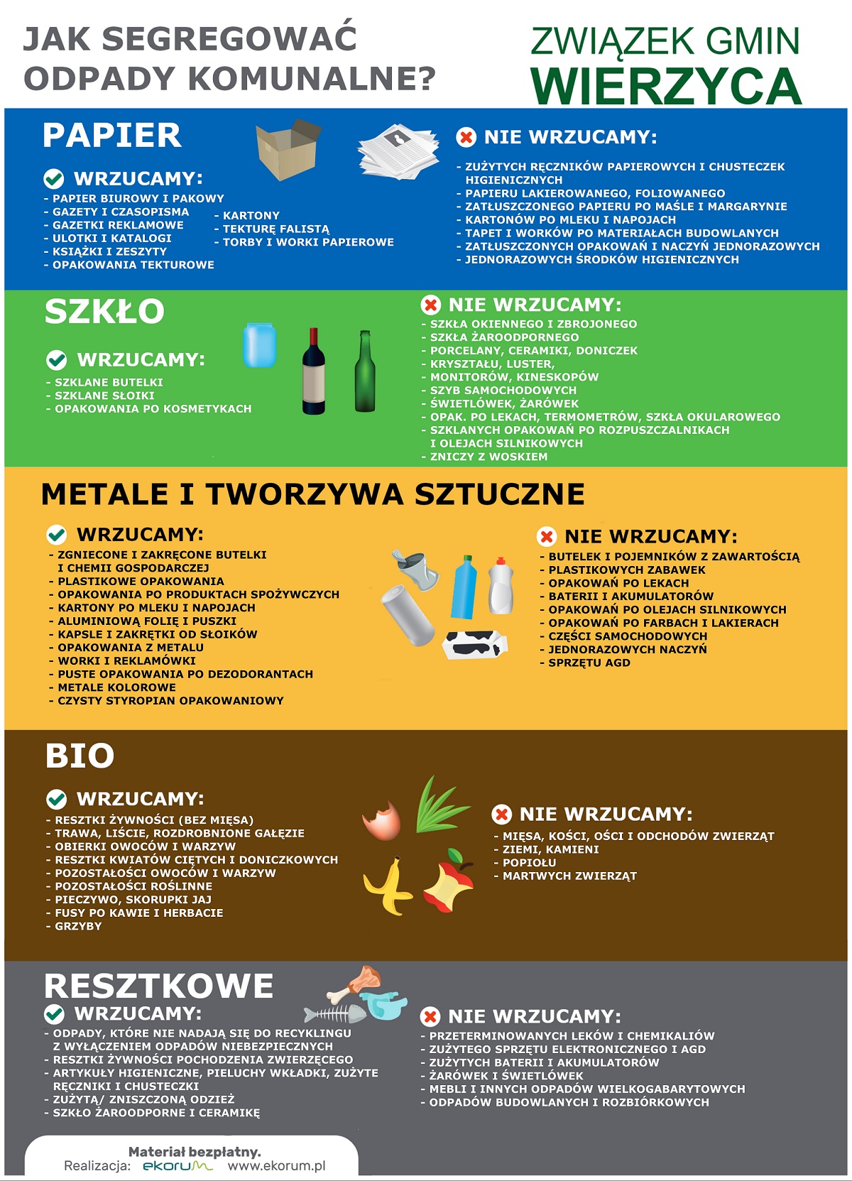 Zarząd SM „Wierzyca” zwraca się z prośbą do mieszkańców o odpowiedzialne segregowanie odpadów. Nie stosowanie się do wymogów będzie skutkowało karami finansowymi.